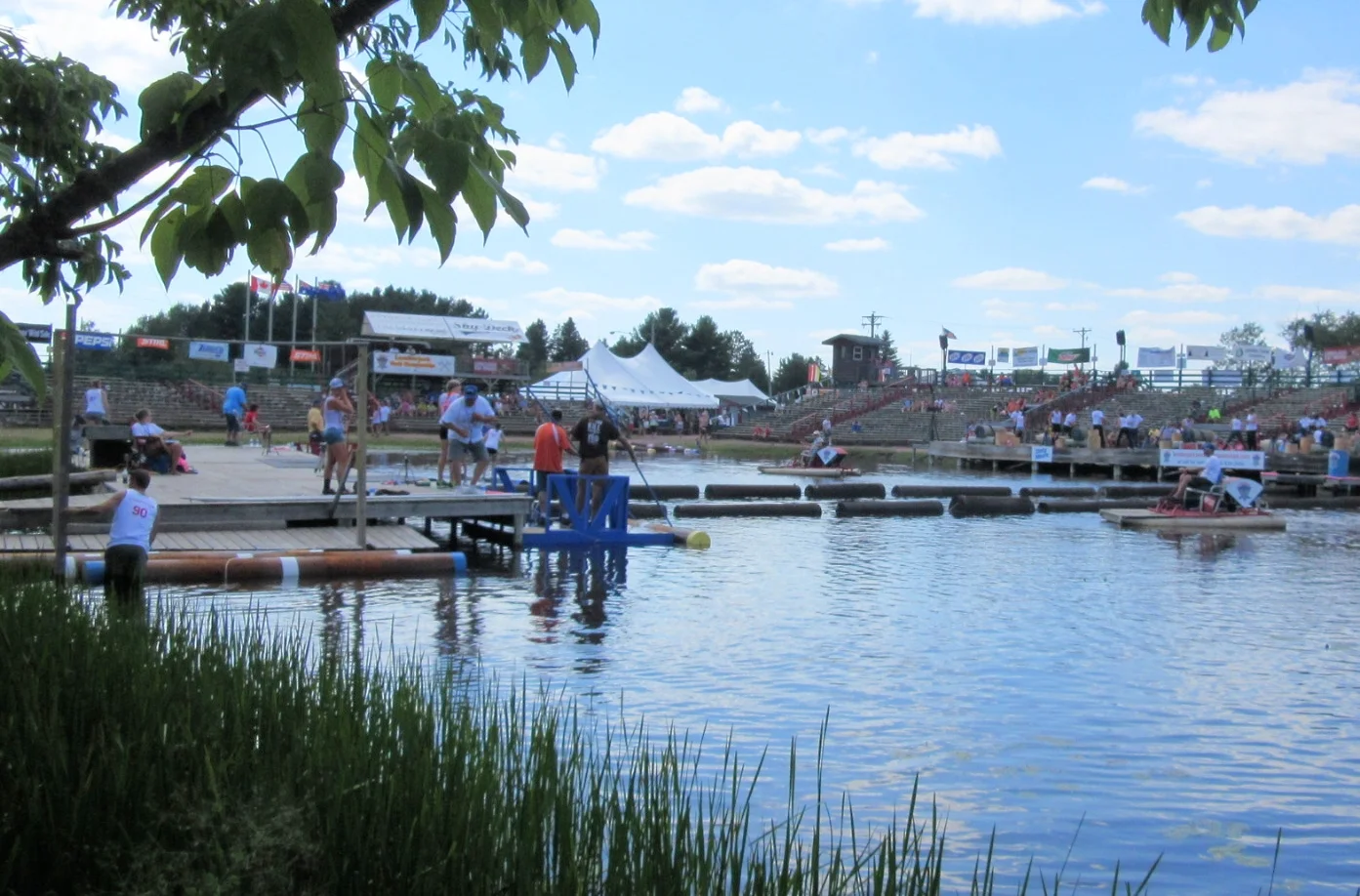 I reach Hayward to battle road construction traffic, and its super hot. I pull off for ice cream and a water bottle fill-up at the site of a lumberjack competition! LOL.