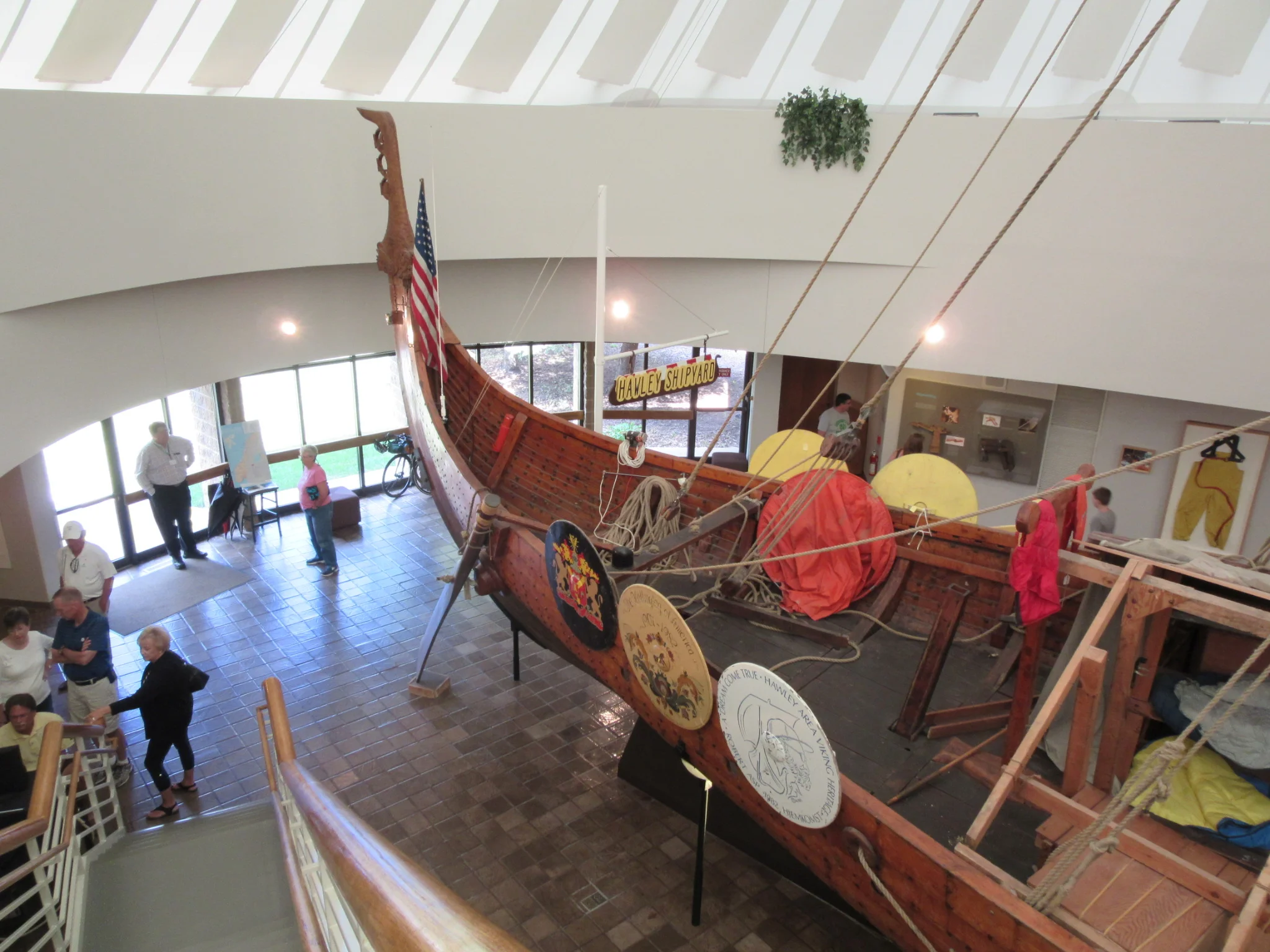 Hjumbhost - an authentic replica of a Viking ship, built right here in Moorhead/Fargo, then sailed across the ocean... note our bikes hanging out near the windows