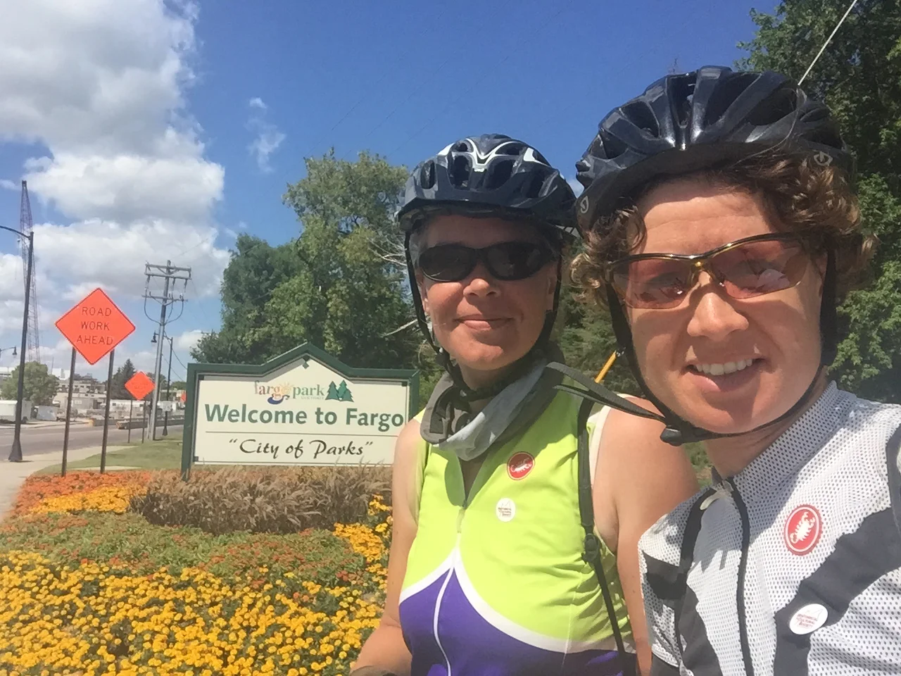 H passes me at 2 miles out of Hitterdal, and it takes me another 9 miles before I can catch her again. Then we work together for most of the way into Fargo.